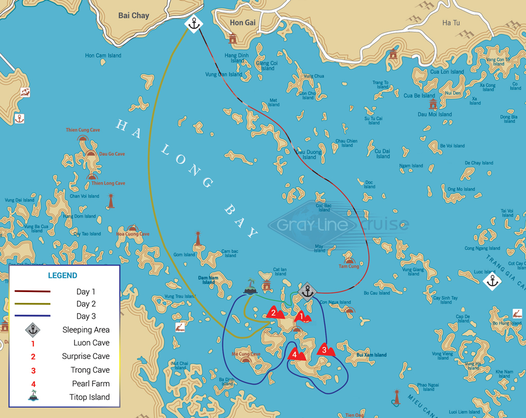 07:45 Tender boat will pick us up to visit the Surprising (Sung Sot) Cave, discovered in 1901, and now being a must-to-see tourist attraction for its extensive space. After the rock formation and millions years of water erosion, the cave is now featured by hundreds of marvelous stalactites, stalagmites and grandeur stone chambers which are incomparable with any cave in Gulf of Tonkin.